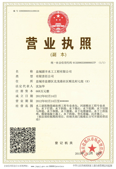 鹽城源豐水工工程有限公司是一家專業從事水下作業的股份制企業,公司多年以來,堅持以人為本,誠信經營,憑借質量、效率、信譽的作風贏得客戶的信賴和贊譽。
